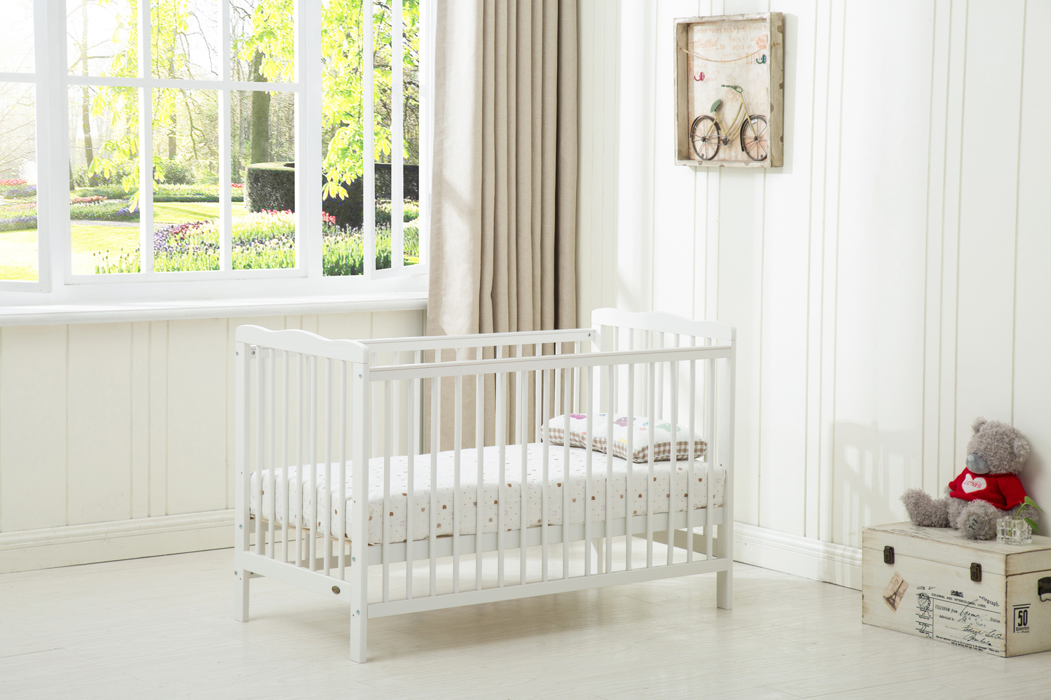 Brooklyn Baby Cot Crib With 120x60 Mattress (White)