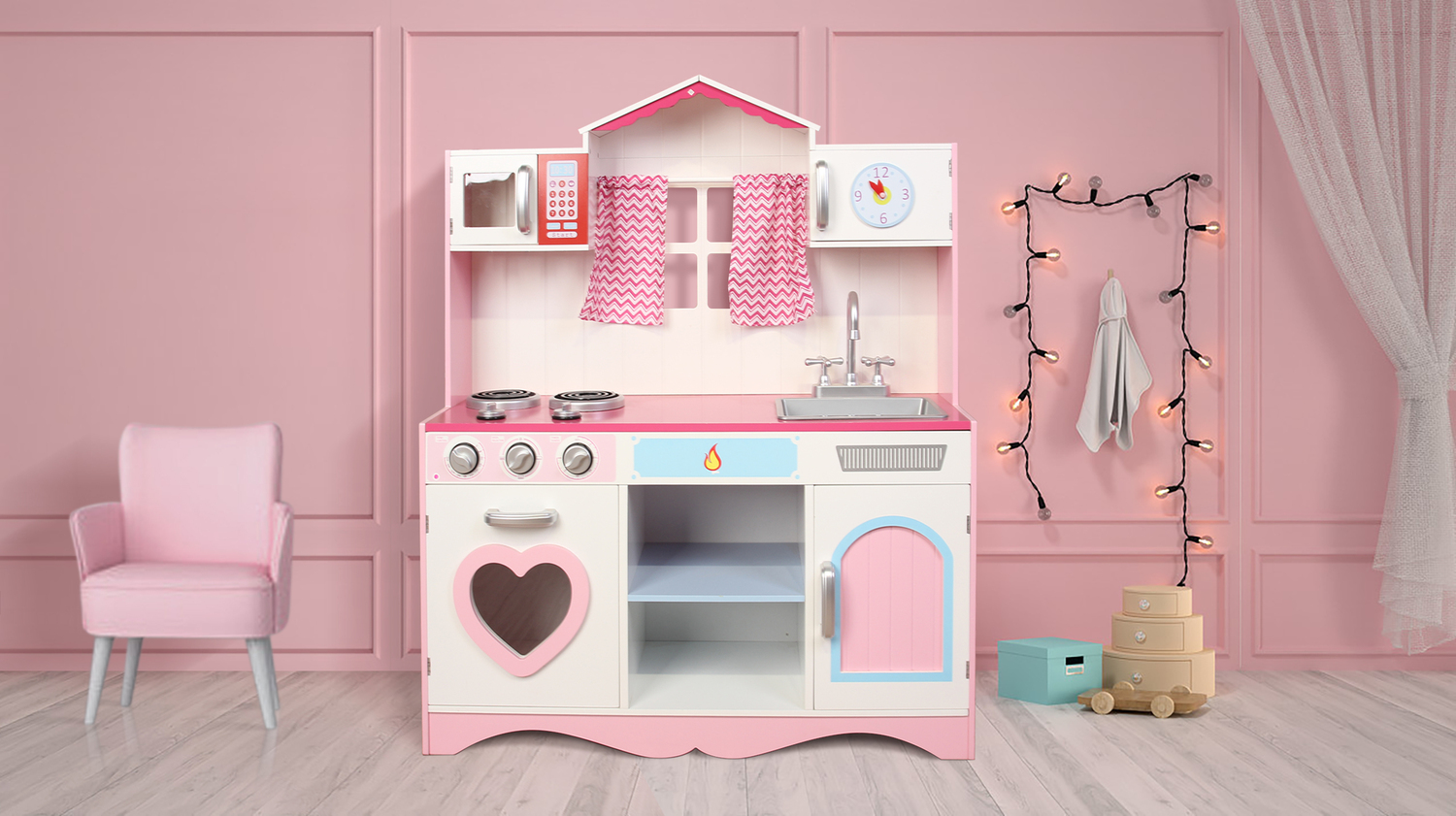 Great For imaginative games and role play. Feeds imaginations and makes kids more creative, Kids can easily imitate their parents role in the kitchen and add in their own unique creative elements, your child can use their imagination to understand what really happens when people cook in the kitchen. Please note, This item is flat packed and will take an hour to assemble.