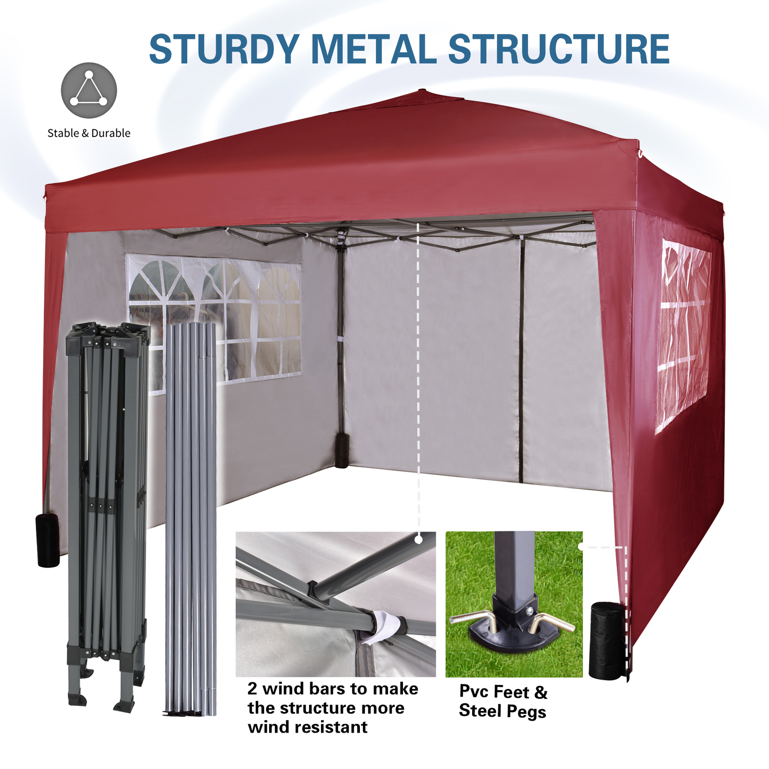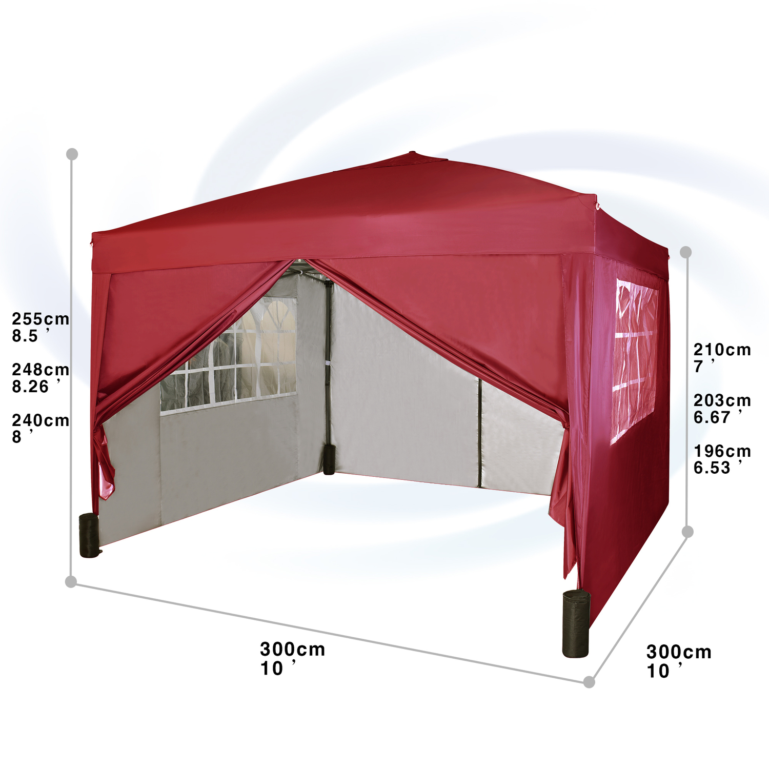 3m x 3m Gazebo Resistant Outdoor Garden Marquee Canopy Canopy + side's (Red)