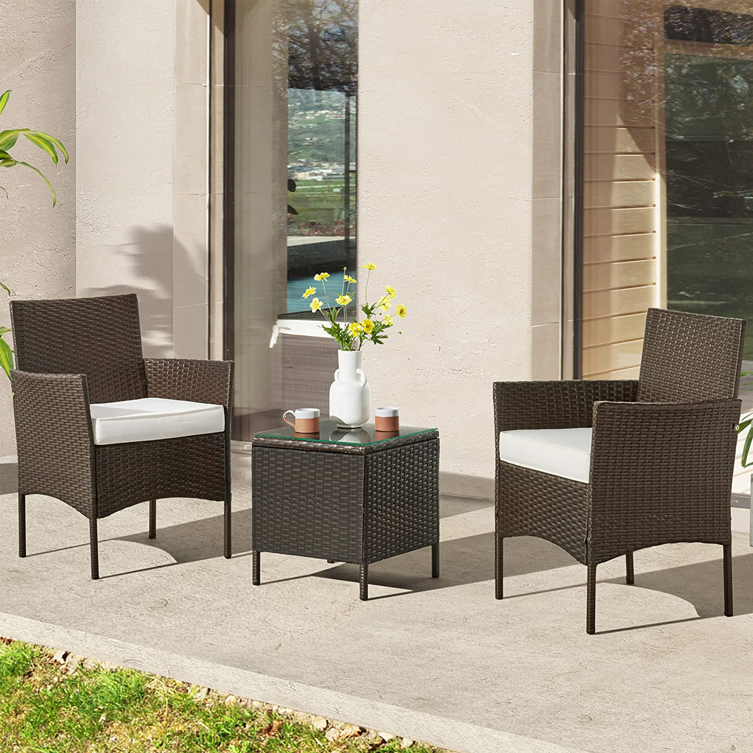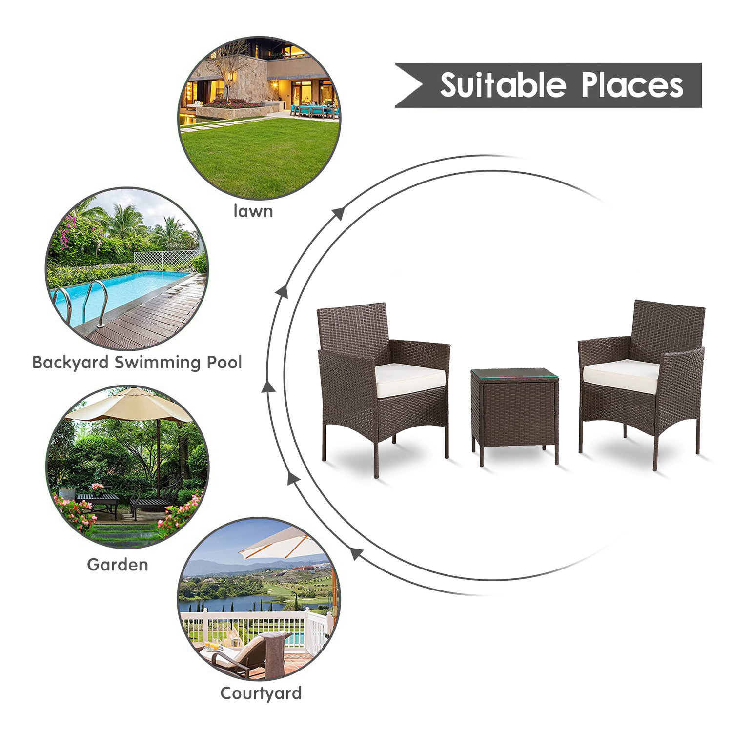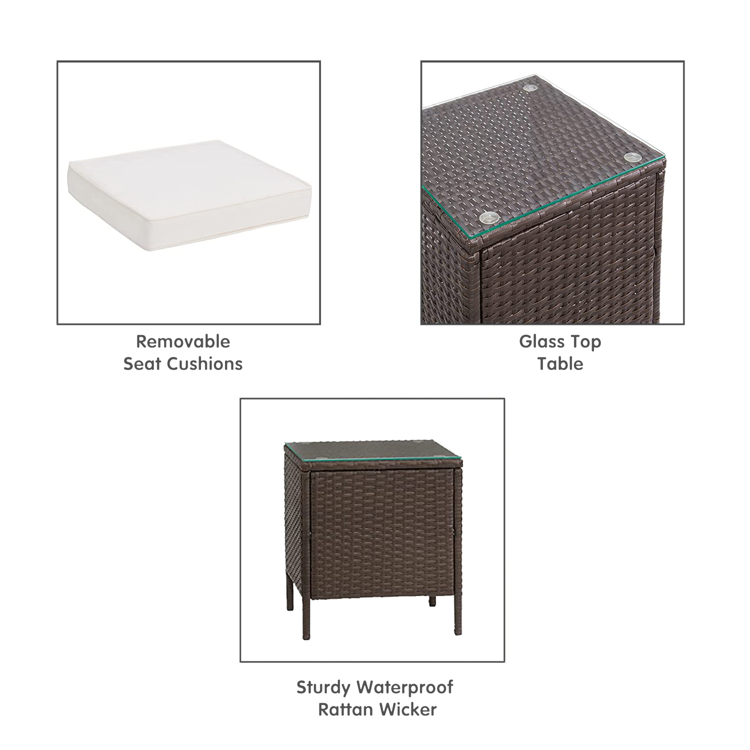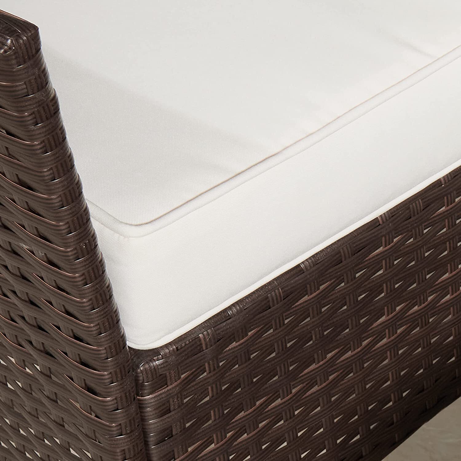 Made with sturdy metal frame and PE rattan, with thick weather-resistant cushions, this set is a perfect addition to your patio, garden, pool area or conservatory.