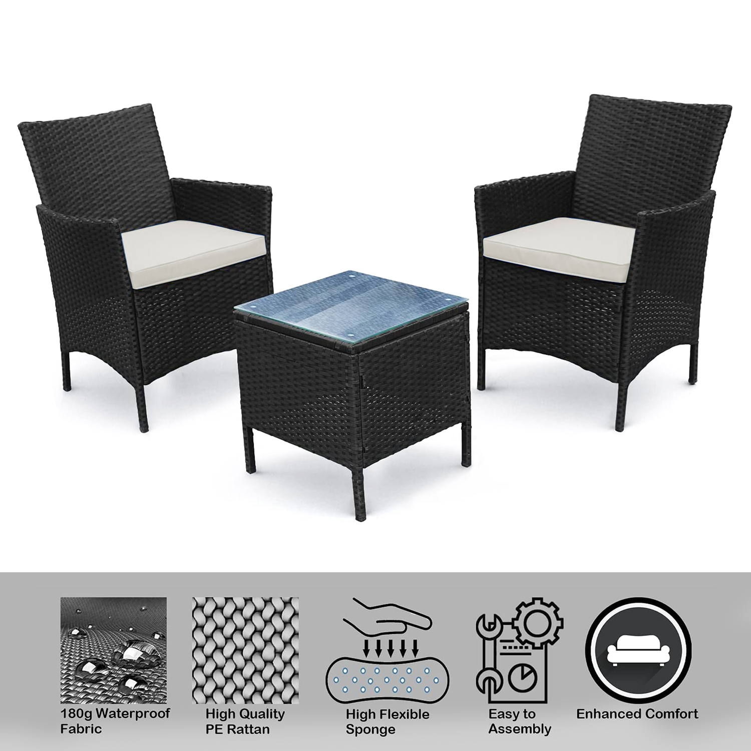3pcs Rattan Outdoor Garden Furniture Sofa Set Table & Chairs ( Rome Black )