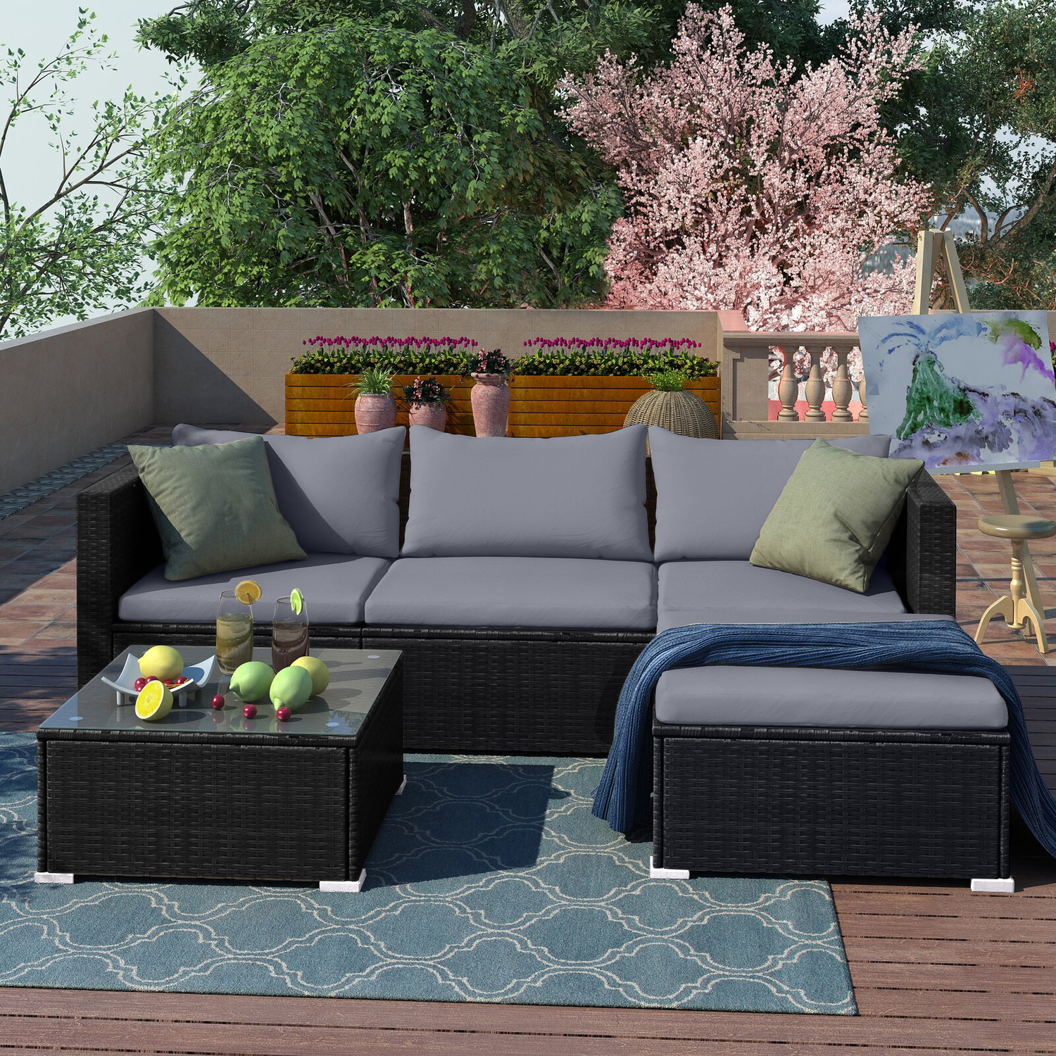 Rattan Garden Furniture Outdoor 5pcs Patio Sofa Set chairs Table (Rupert Black)