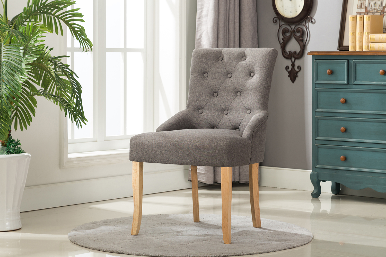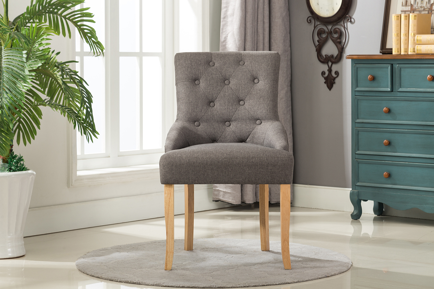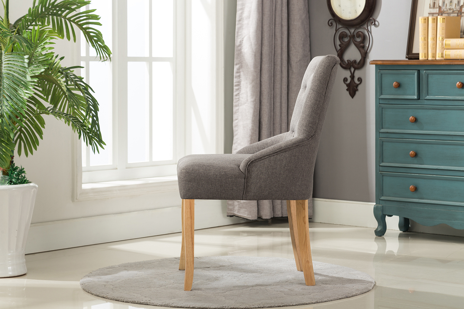 Adele Fabric Accent Chair Dining Chair Scoop Back (Grey)