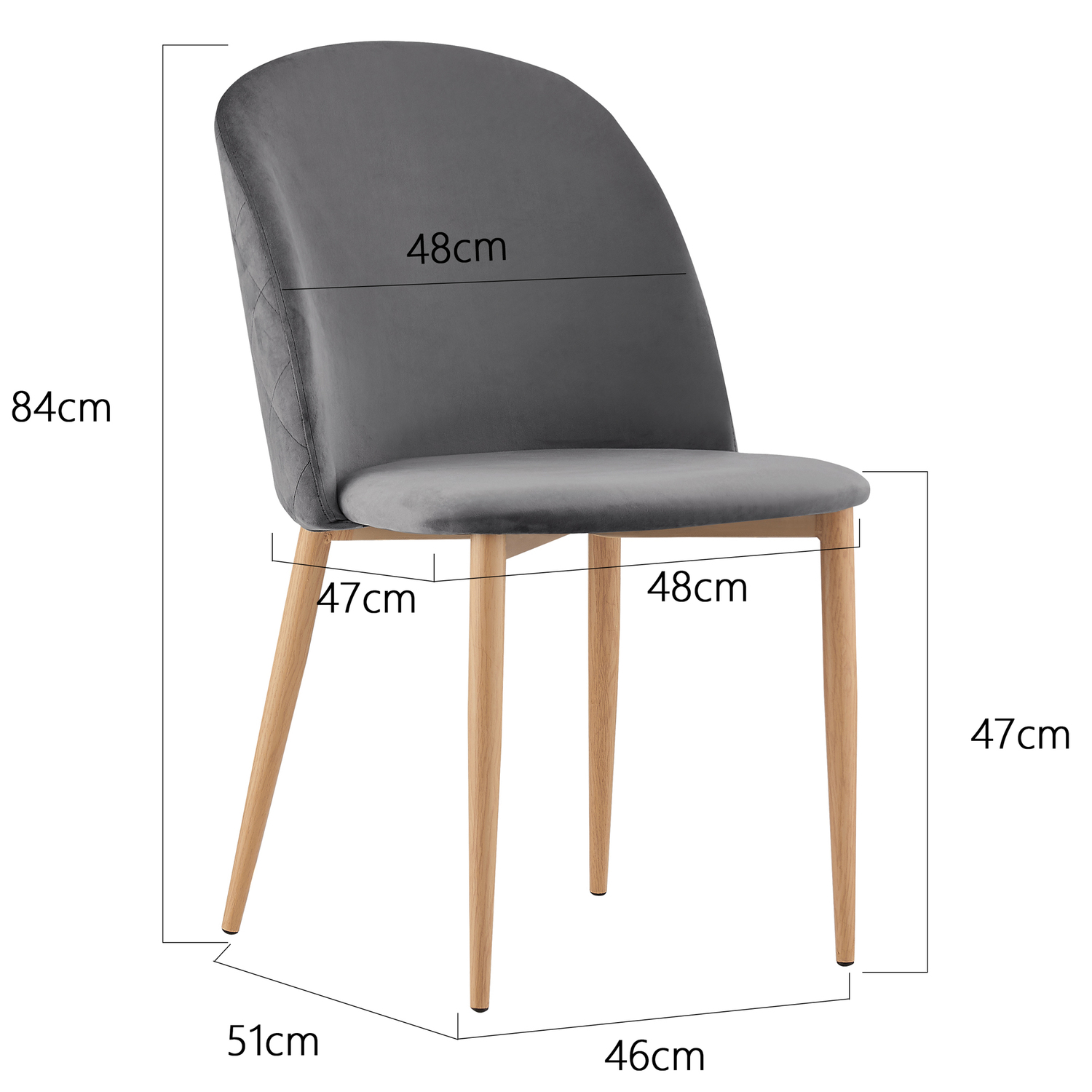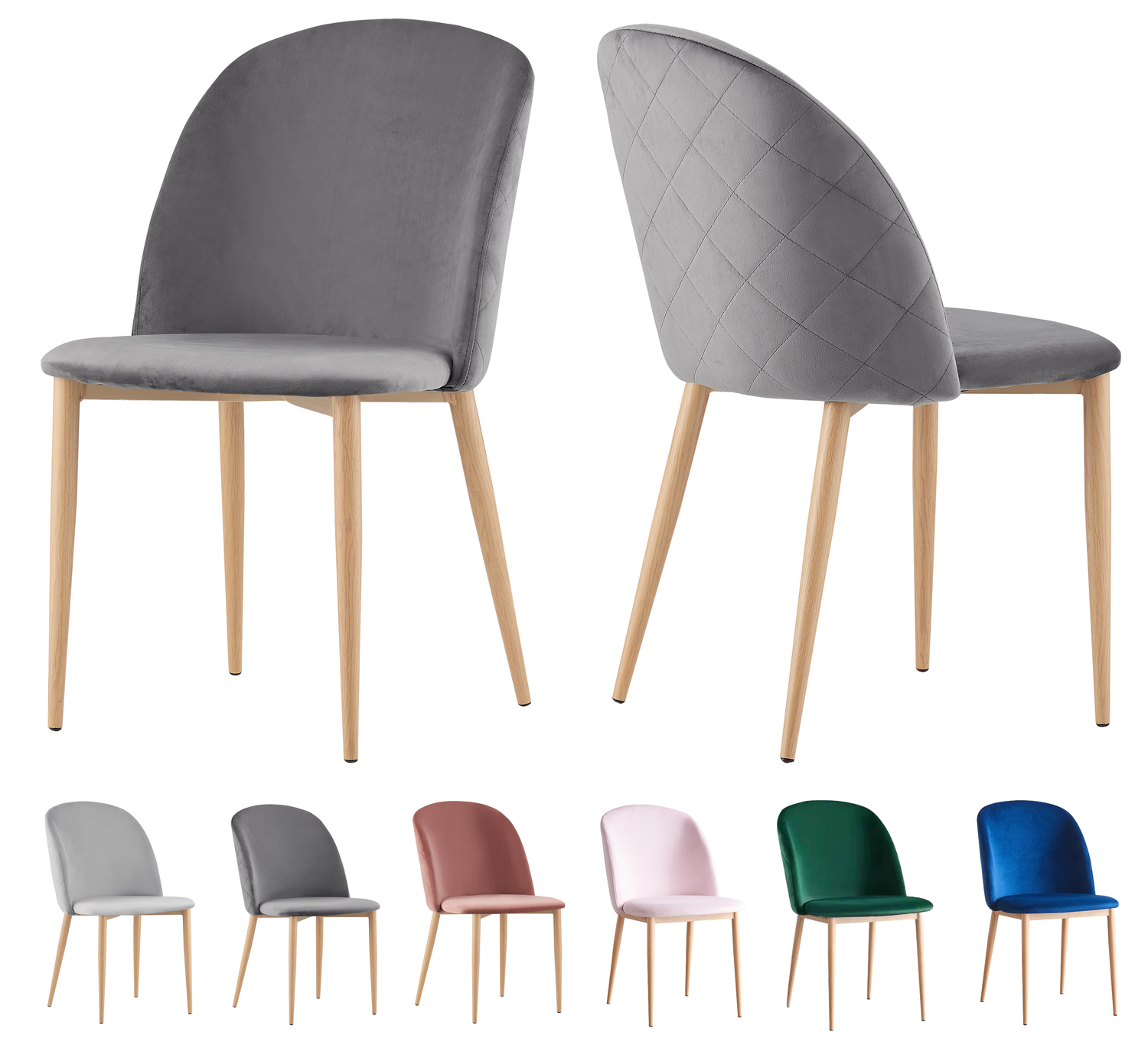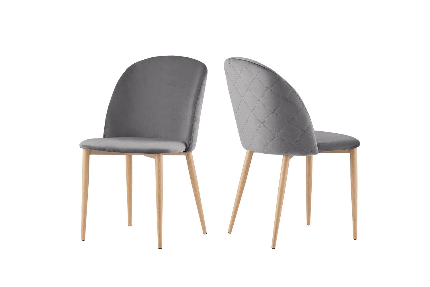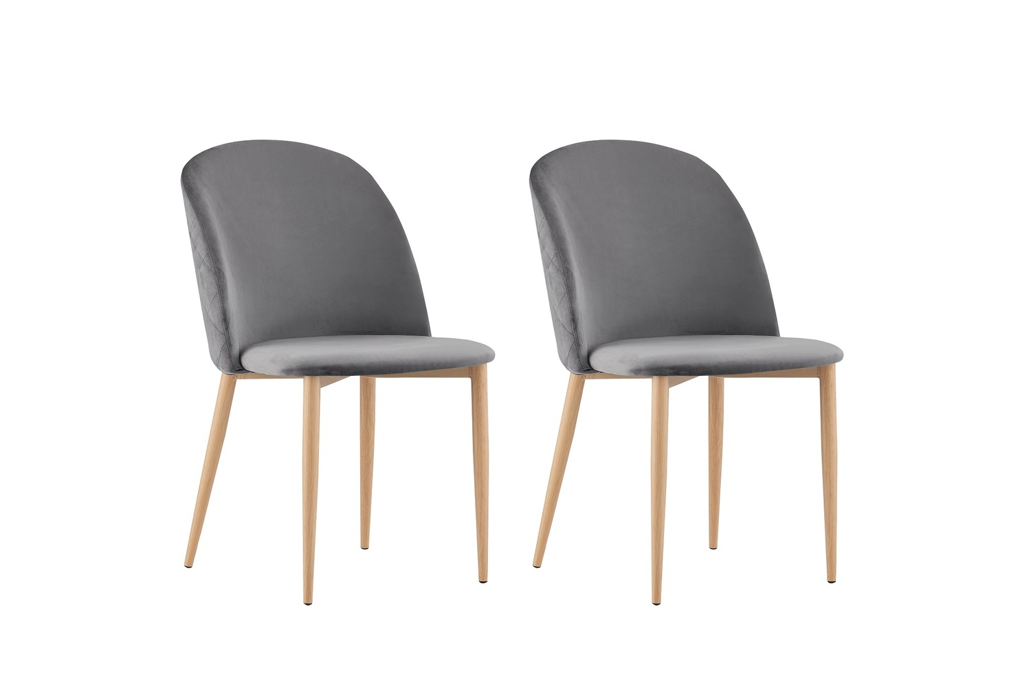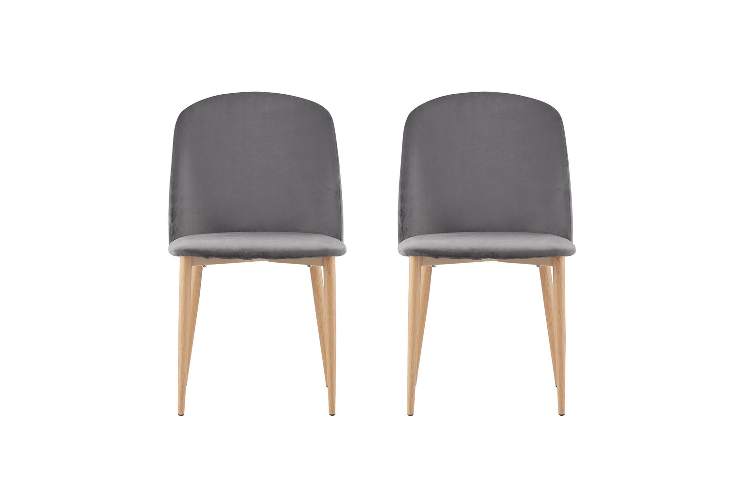 Set of 2 Bradley Velvet Dining Chairs with Wood Effect Metal Legs (Grey)