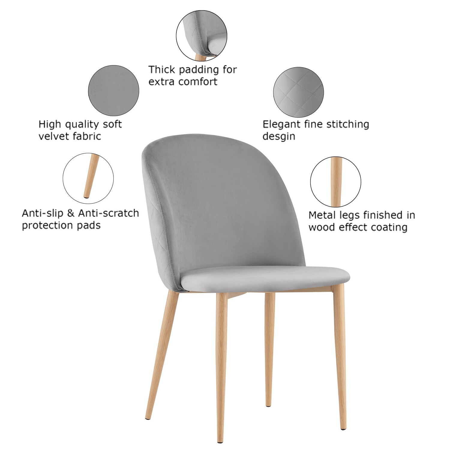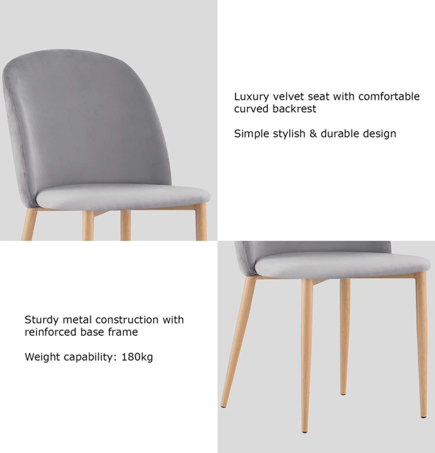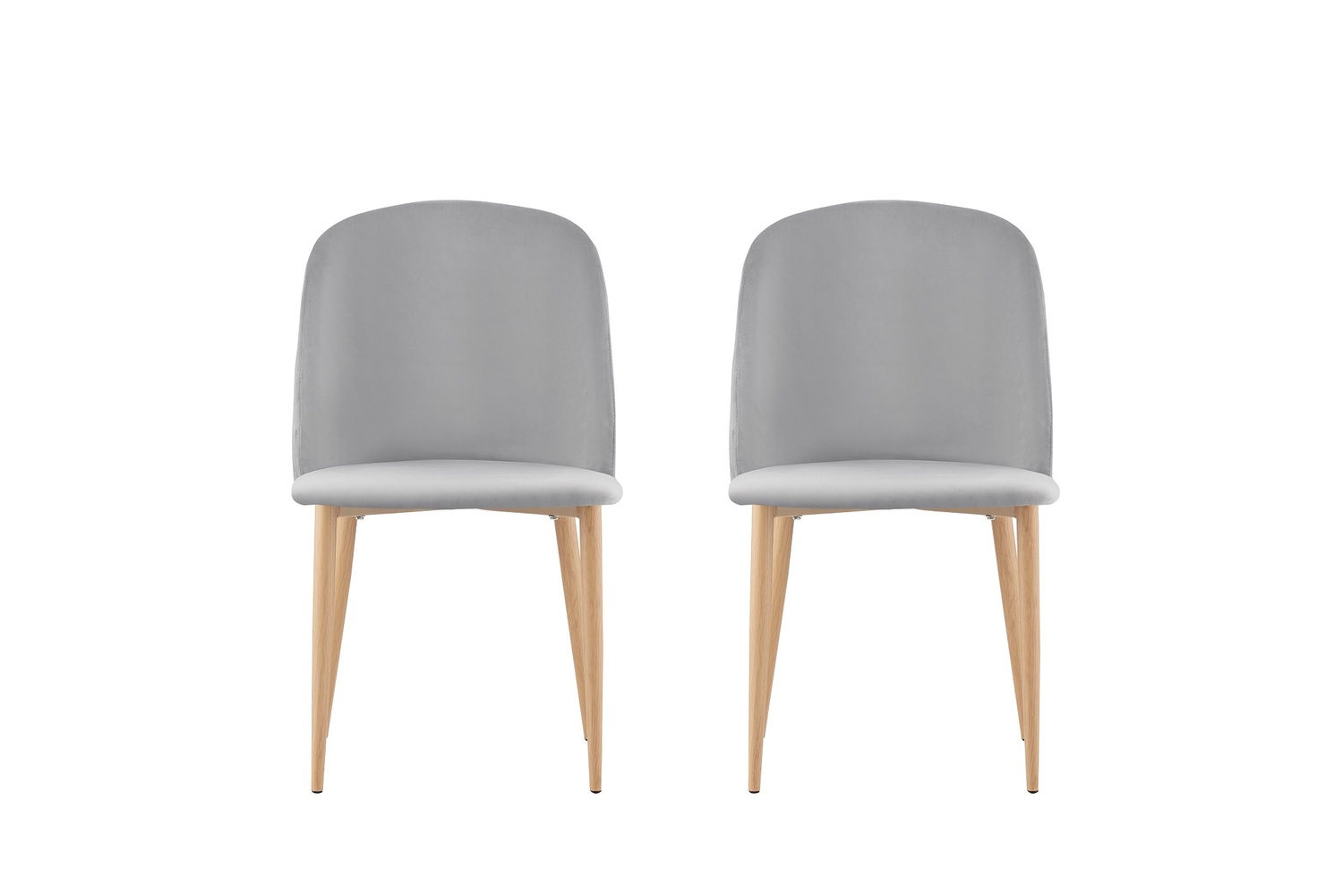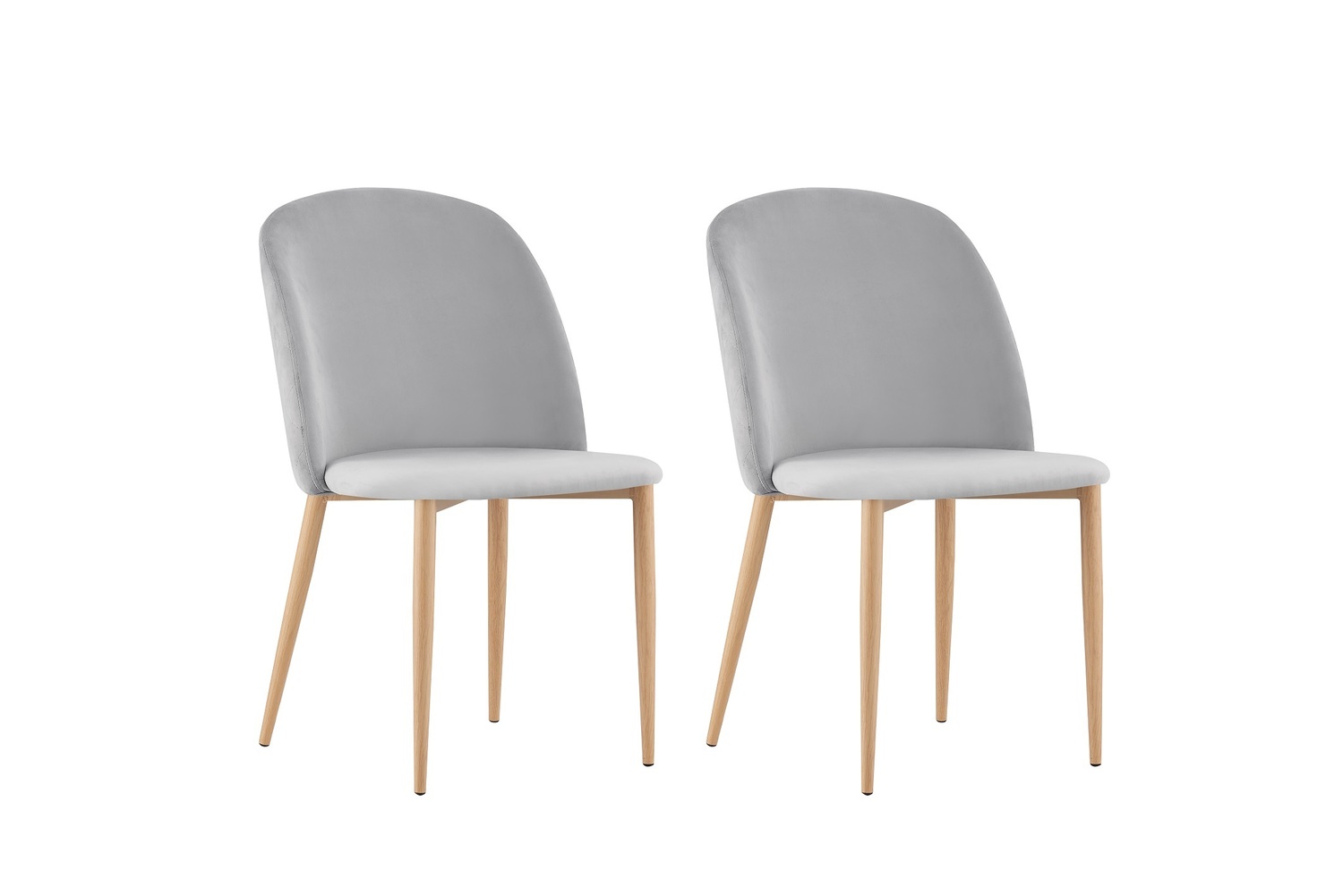 Set of 2 Bradley Velvet Dining Chairs with Wood Effect Metal Legs (Light Grey)