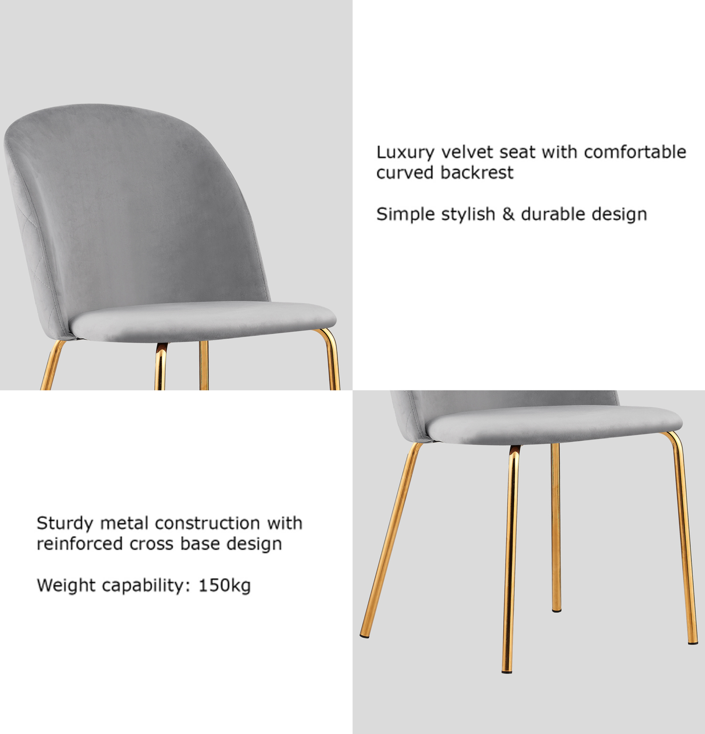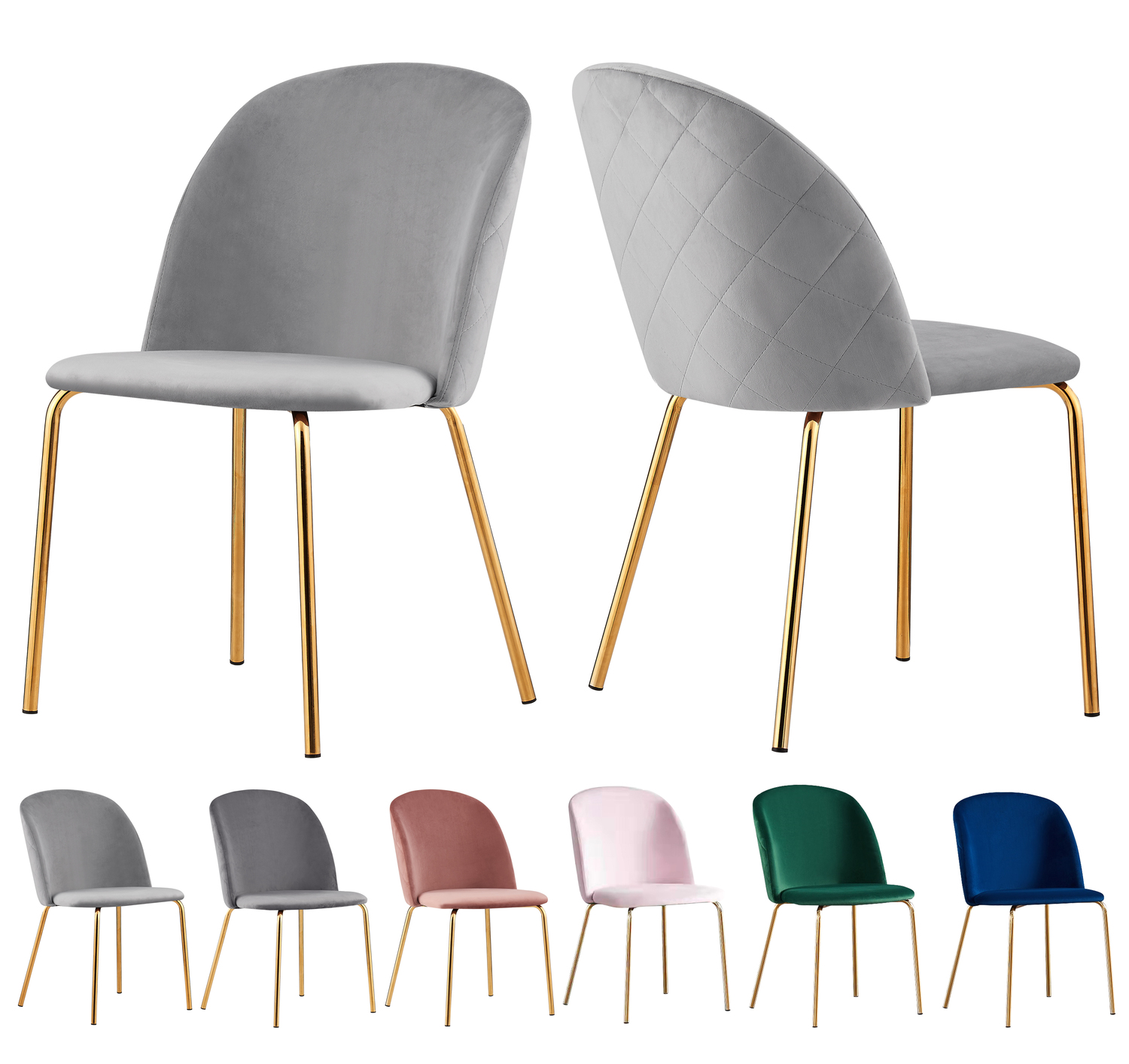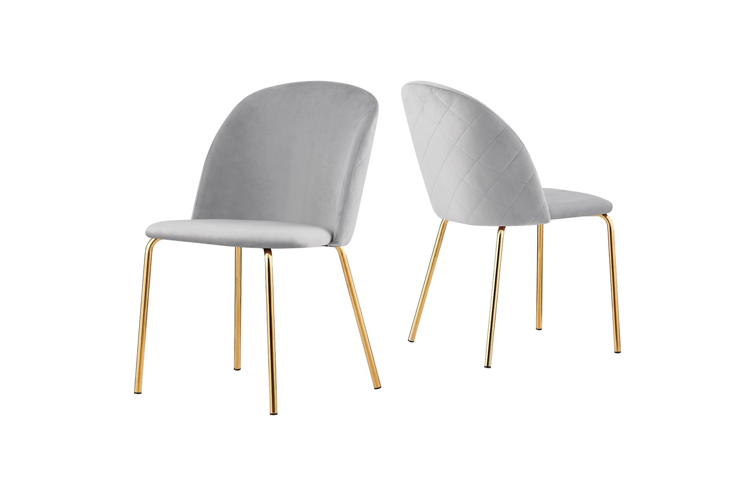 Set of 2 Dale Velvet Dining Chairs with Golden Finish Metal Legs (Light Grey)