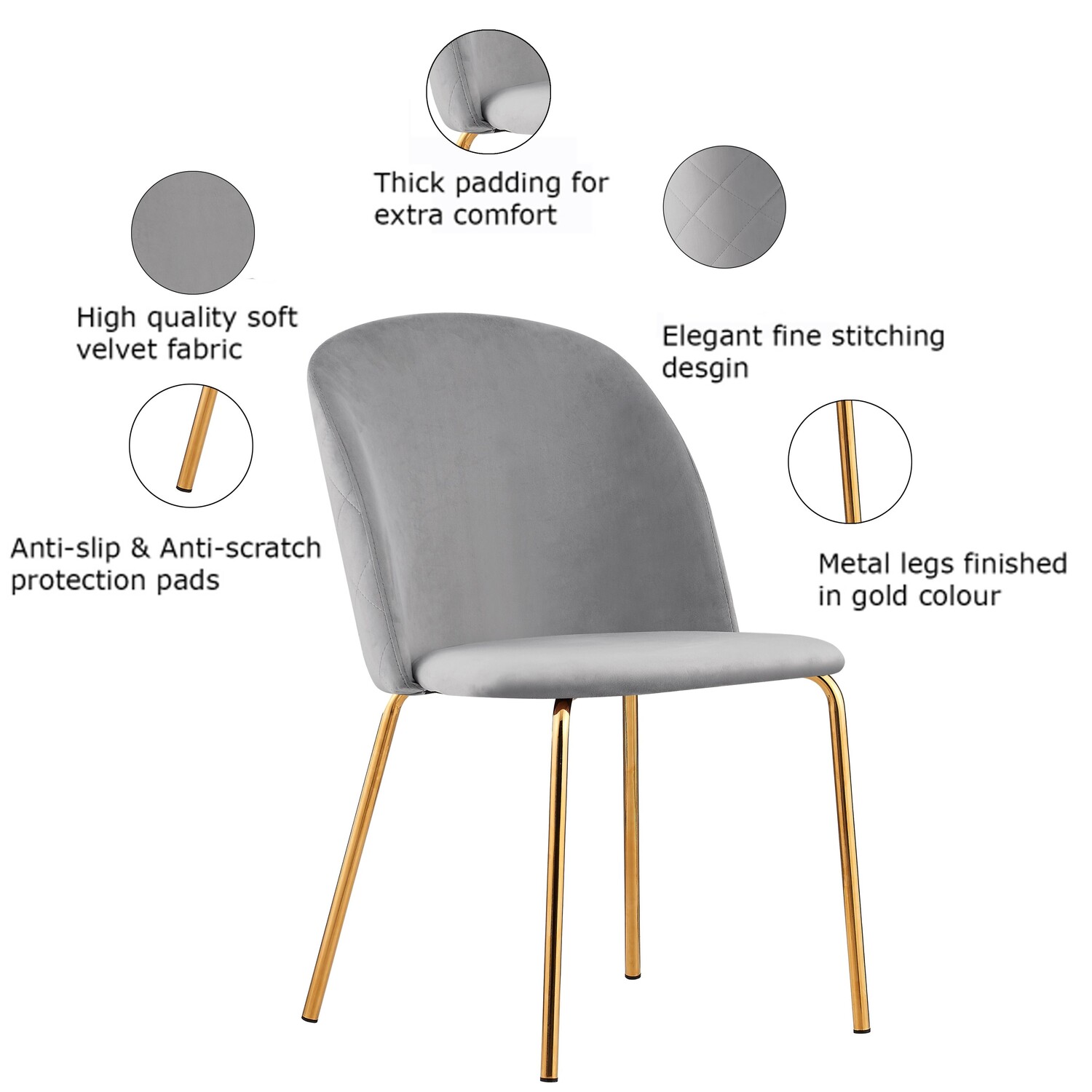 The new Dale dining chairs bring modern furniture design style into your dining room, with simple stitching lines. Thick velvet padded cushion and low back support provide great sitting comfort.