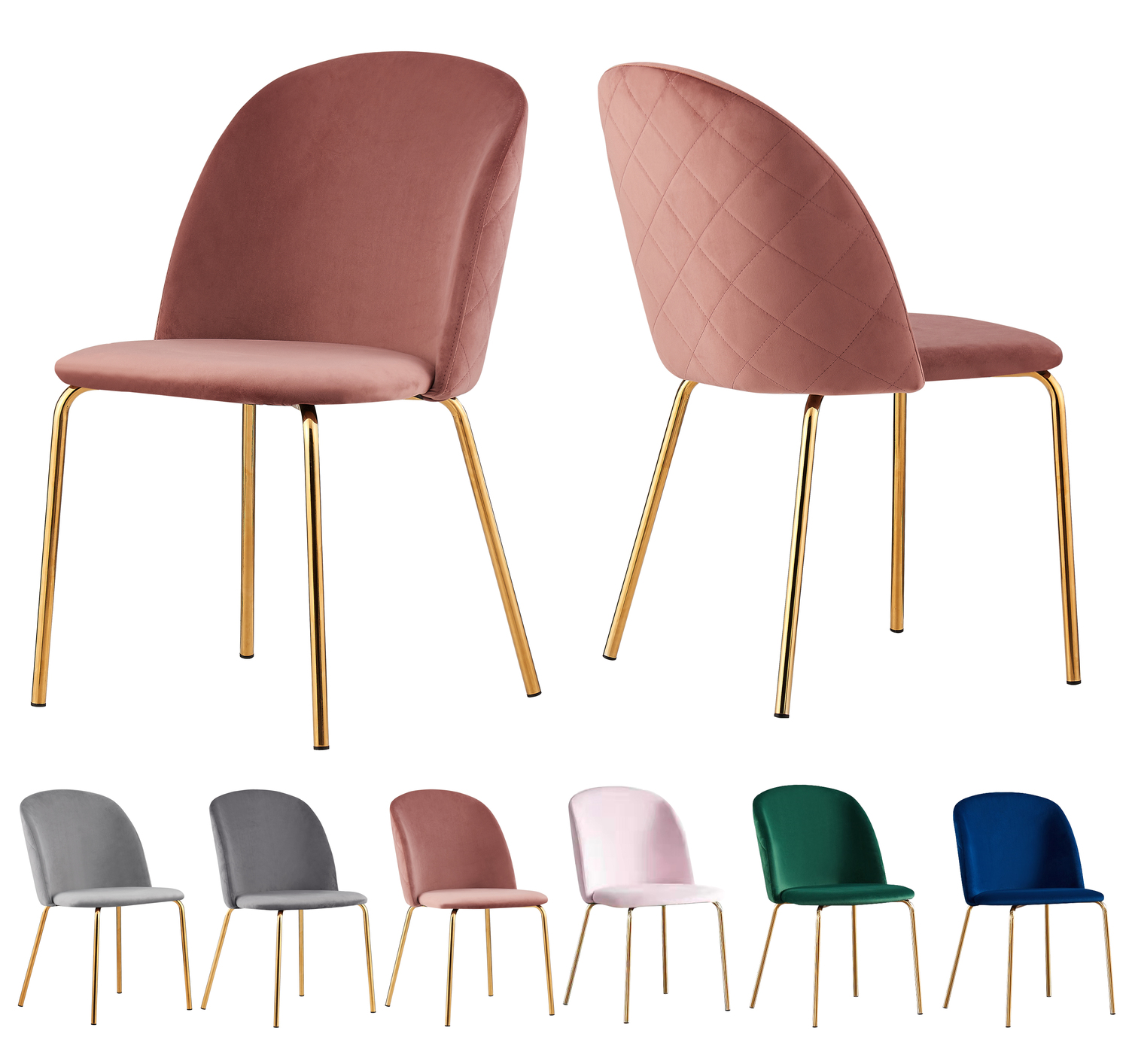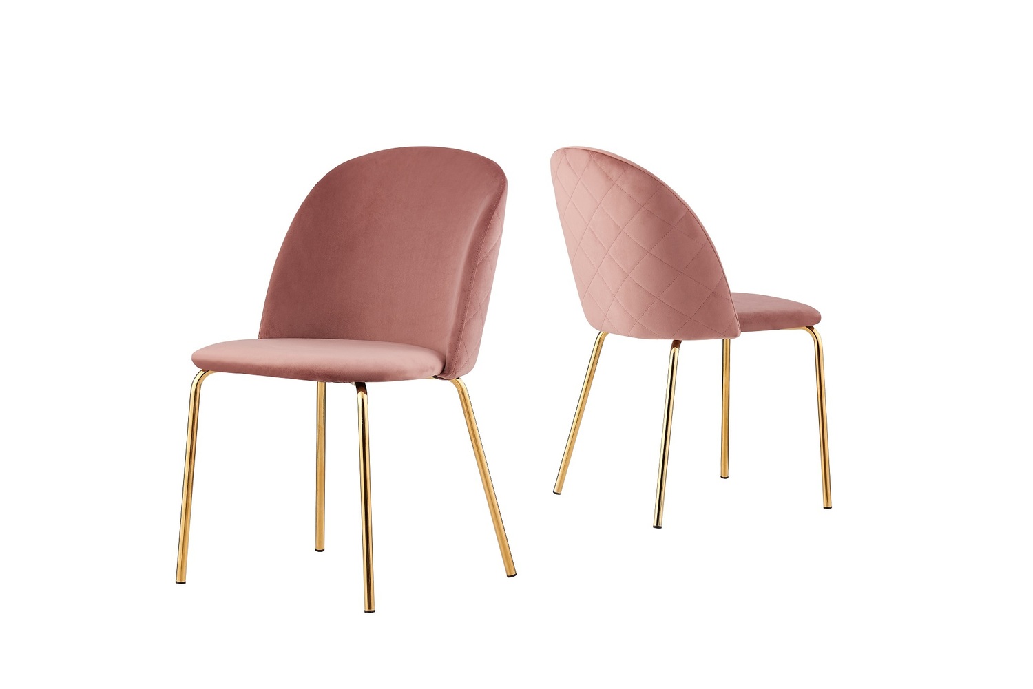 Set of 2 Dale Velvet Dining Chairs with Golden Finish Metal Legs (Pink)
