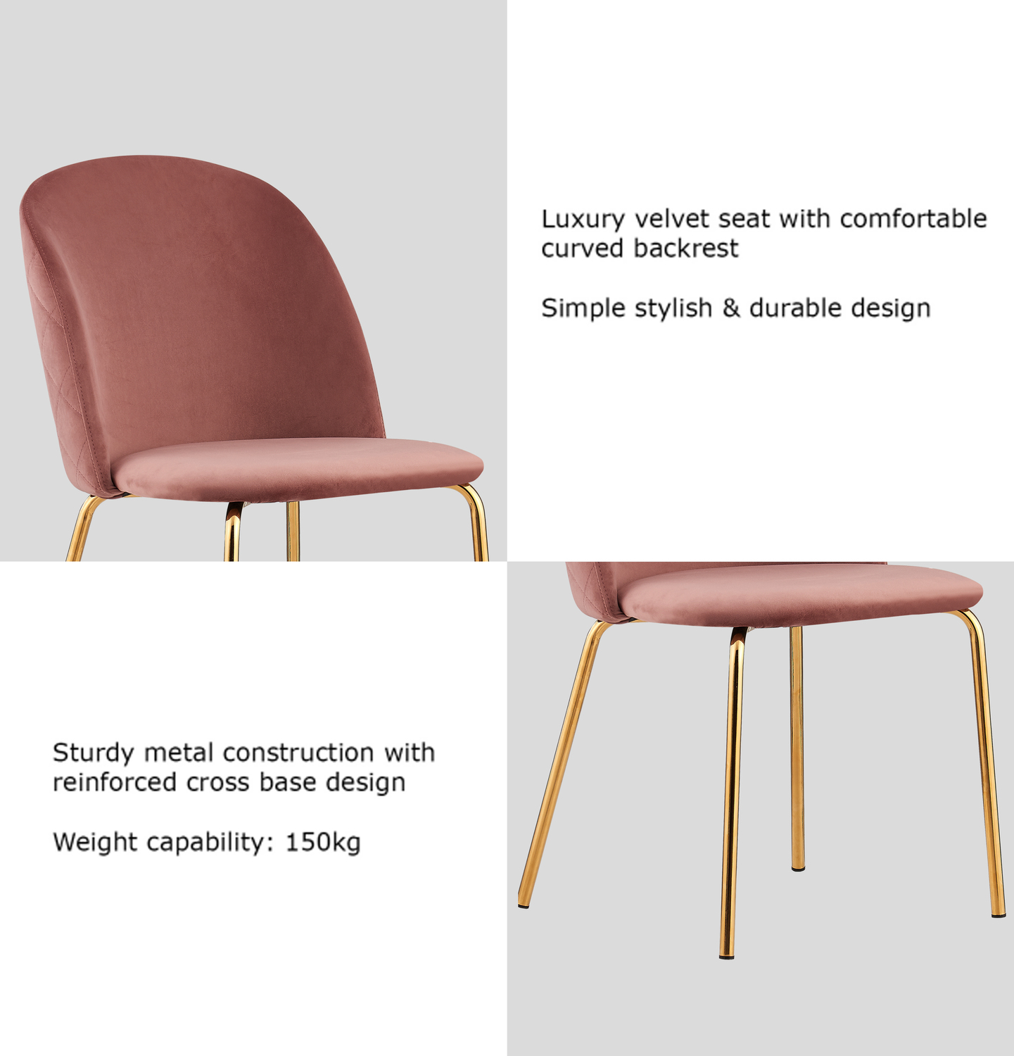 The new Dale dining chairs bring modern furniture design style into your dining room, with simple stitching lines. Thick velvet padded cushion and low back support provide great sitting comfort.