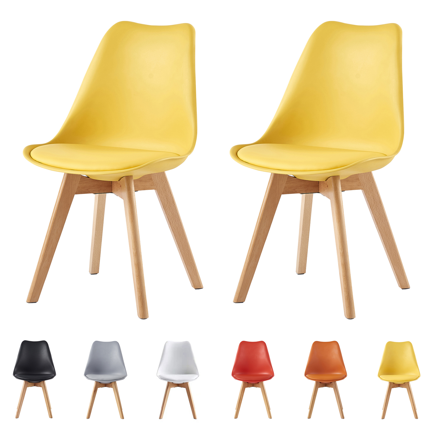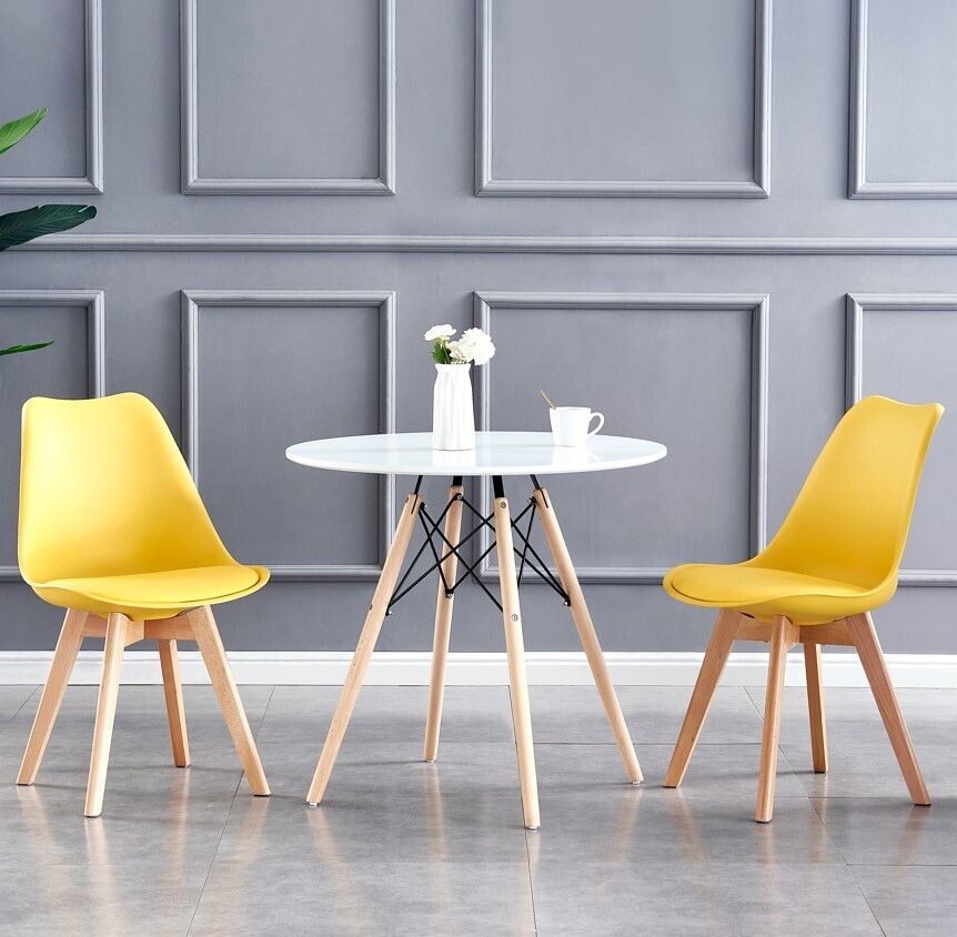 Eva Deluxe Dining Chairs Deluxe Wooden Legs Set of 2(Yellow)