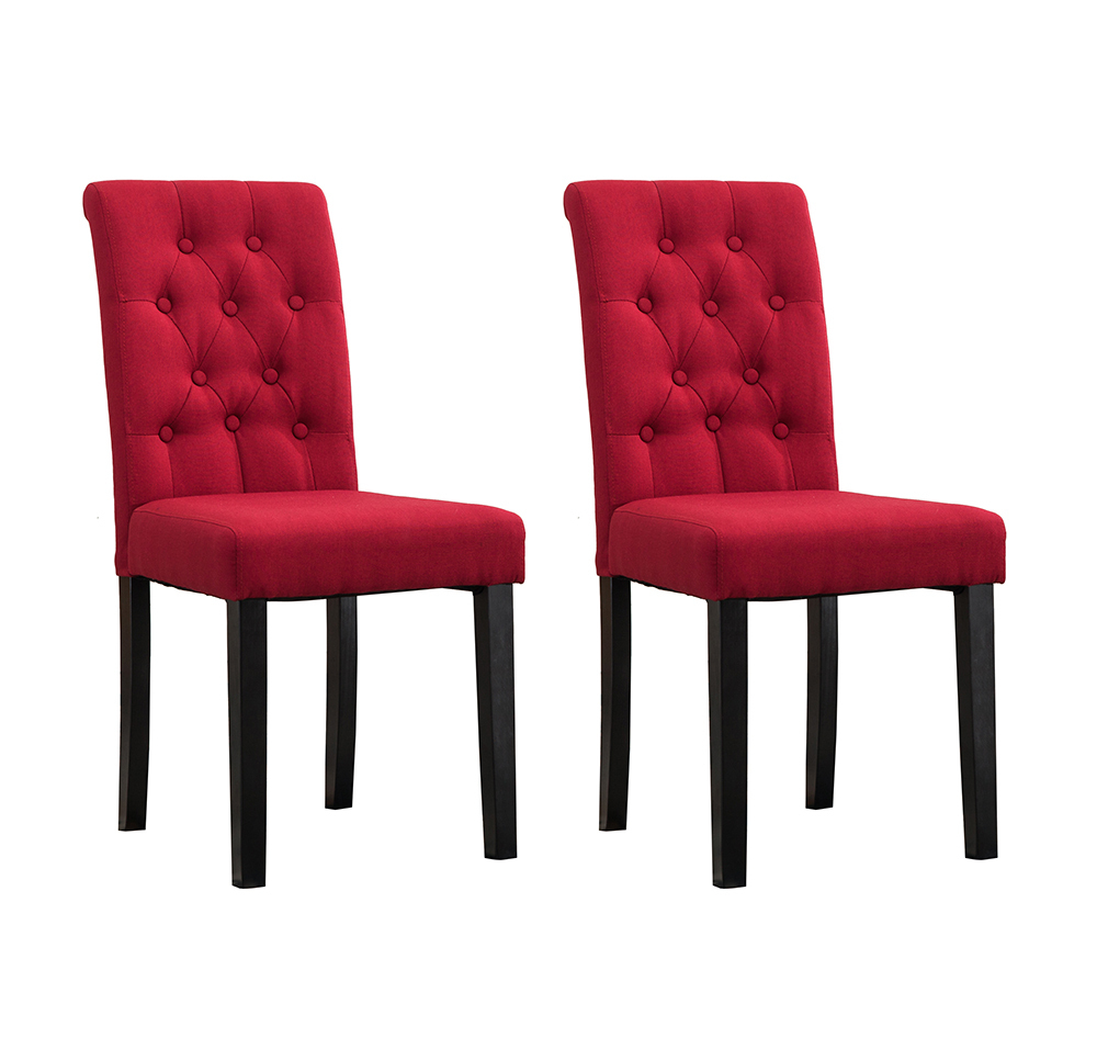 Set of 2 Fabio Lined Fabric Dining Chairs (Red)