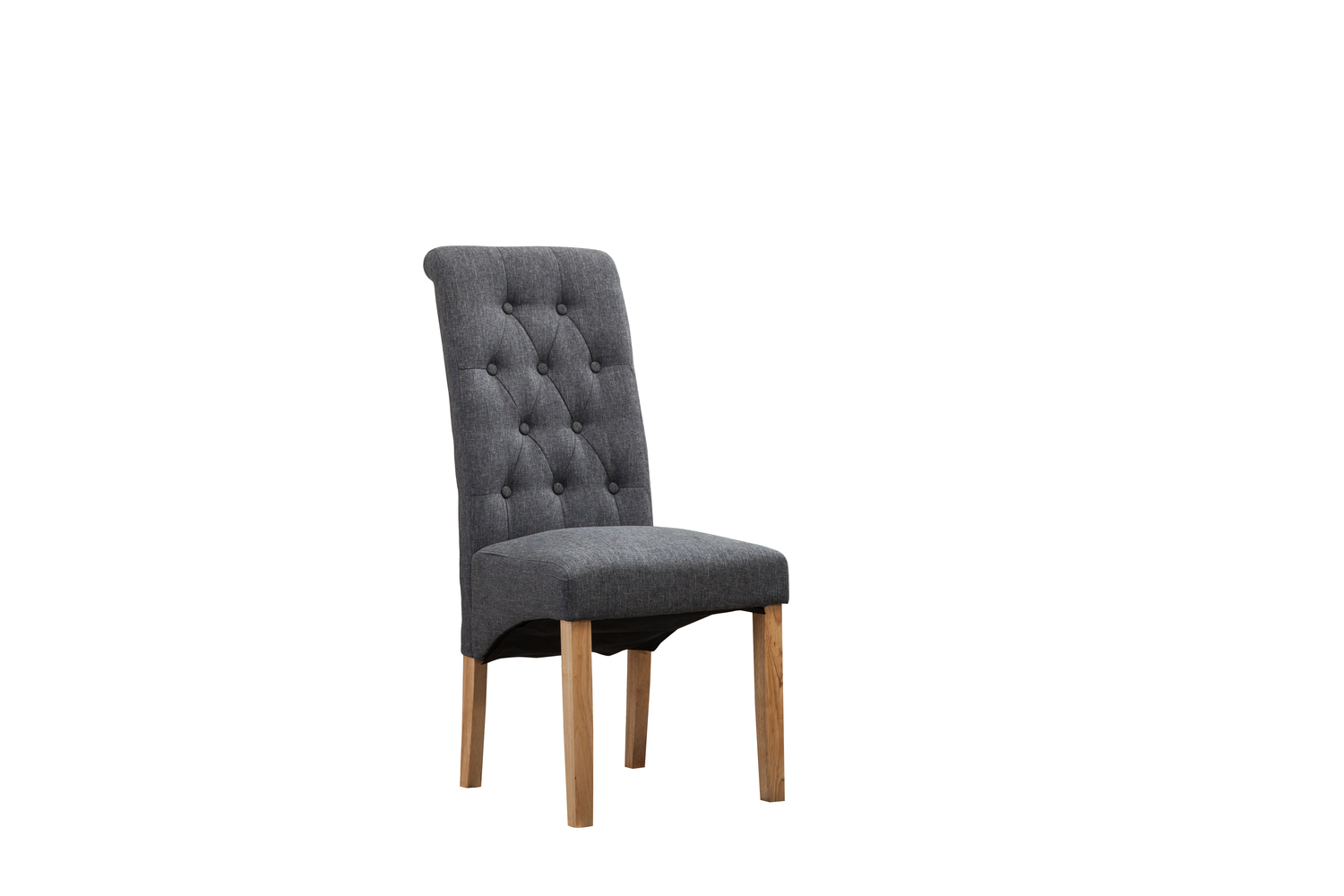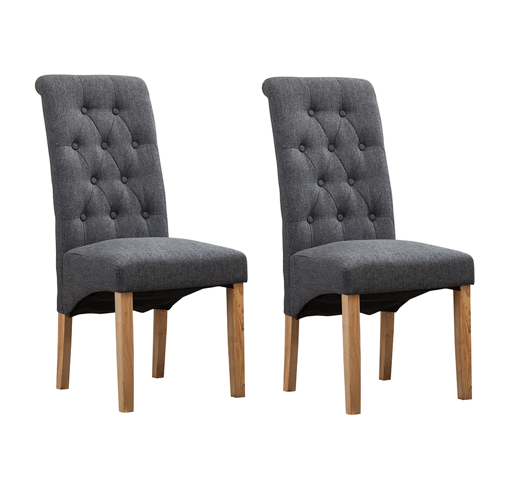 Set of 2 Fey Lined Fabric Dining Chairs Roll Top Scroll High Back (Grey)