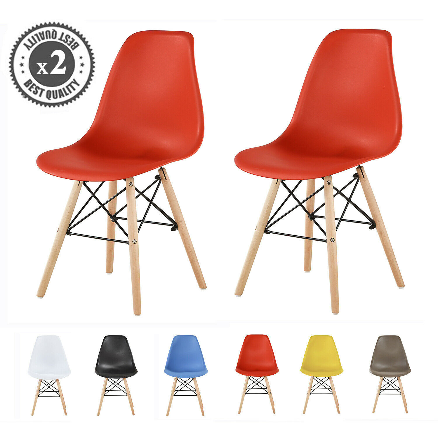 Set of 2 Lia Dining Chairs With Wooden Legs Eiffel Retro Lounge (Red)