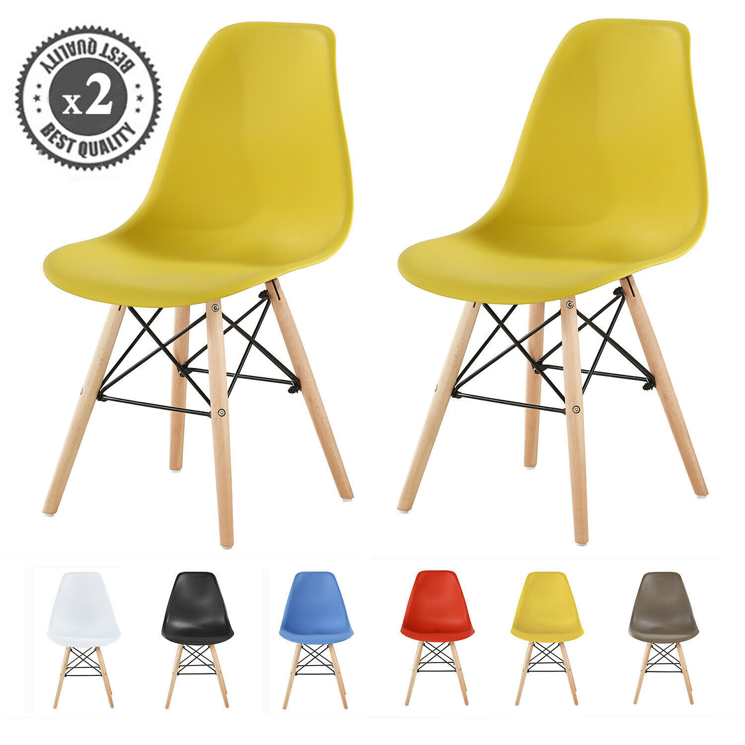 Set of 2 Lia Dining Chairs With Wooden Legs Eiffel Retro Lounge (Yellow)