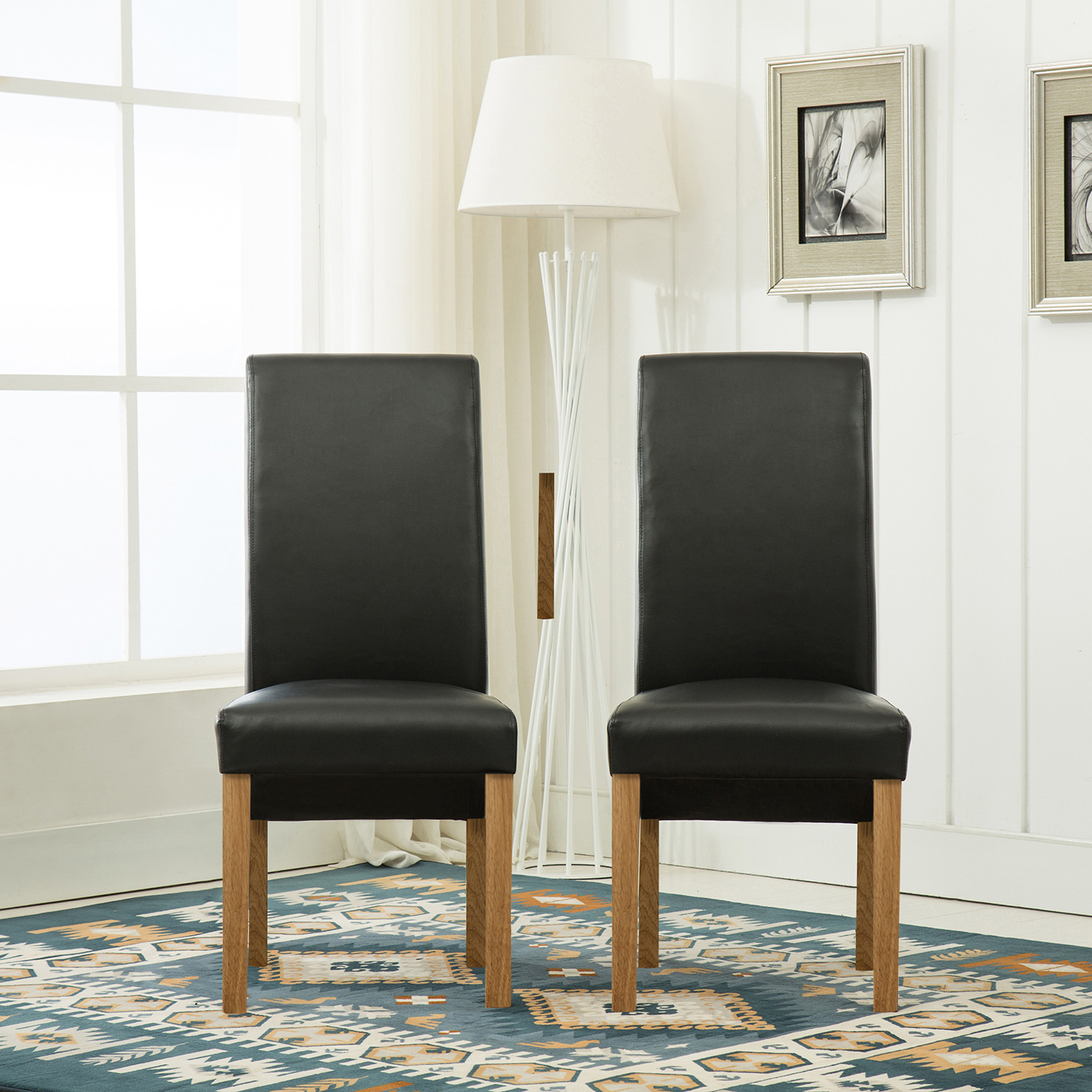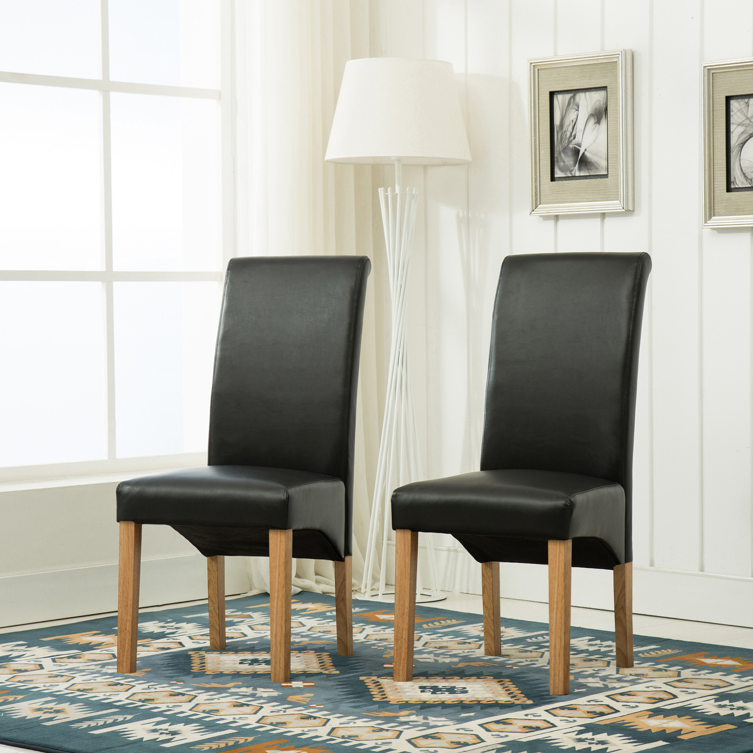 Lucy Faux Leather Dining Chairs Roll Top Scroll High Back (BLACK)