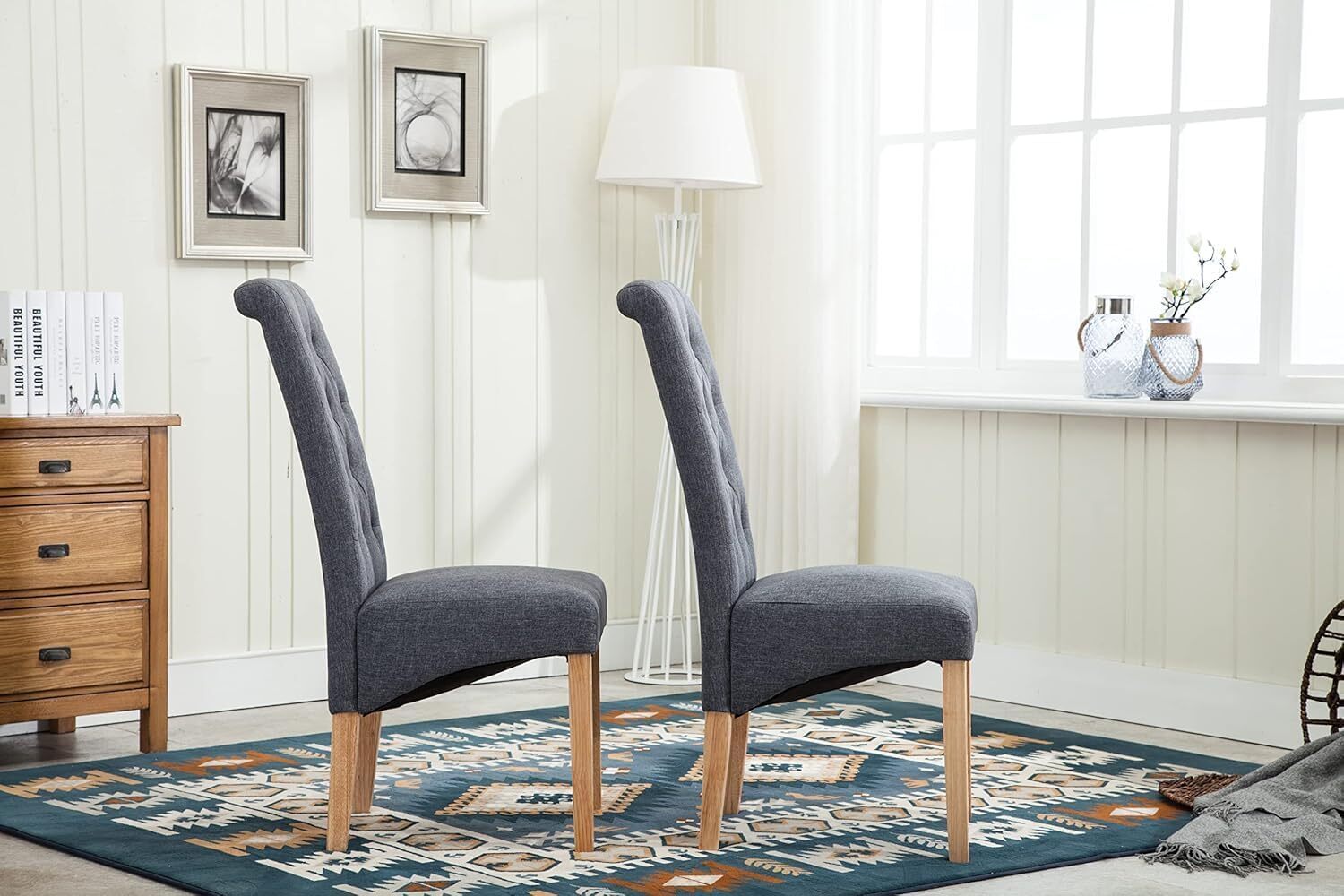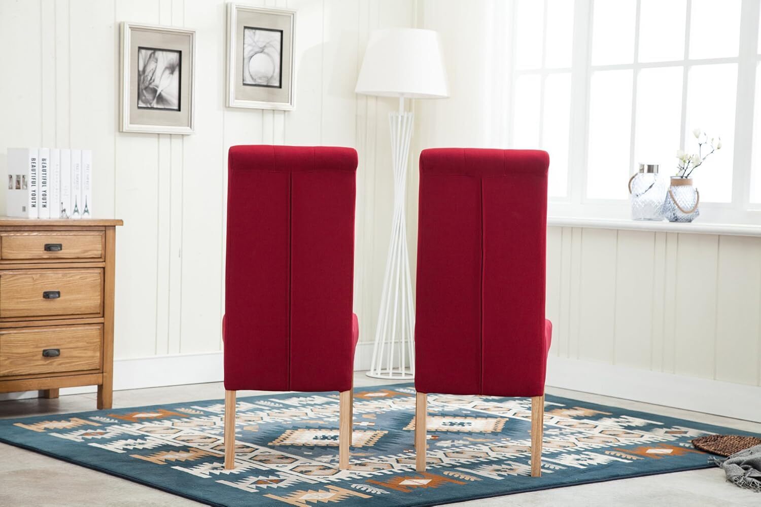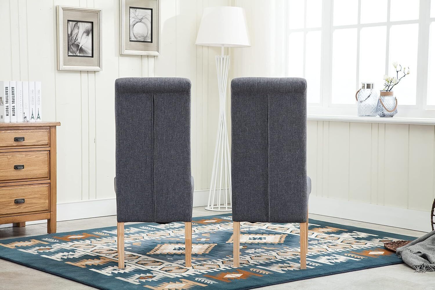 mcc direct Set of 2 Linen Fabric Dining Chairs Roll Top Scroll High Back For Home & Commercial Restaurants