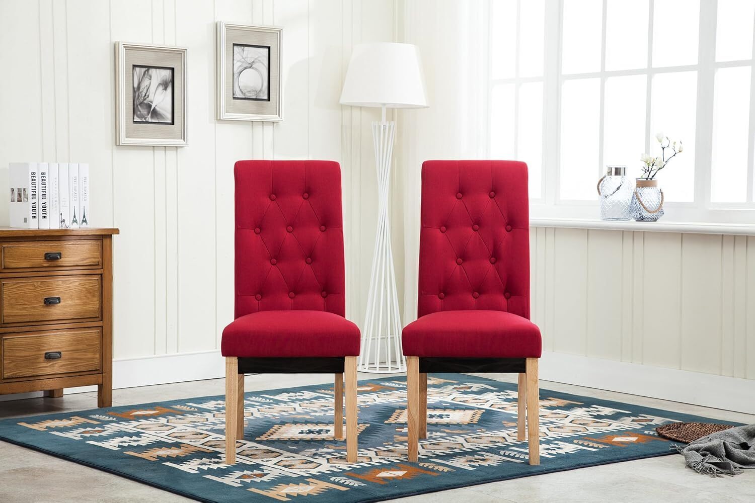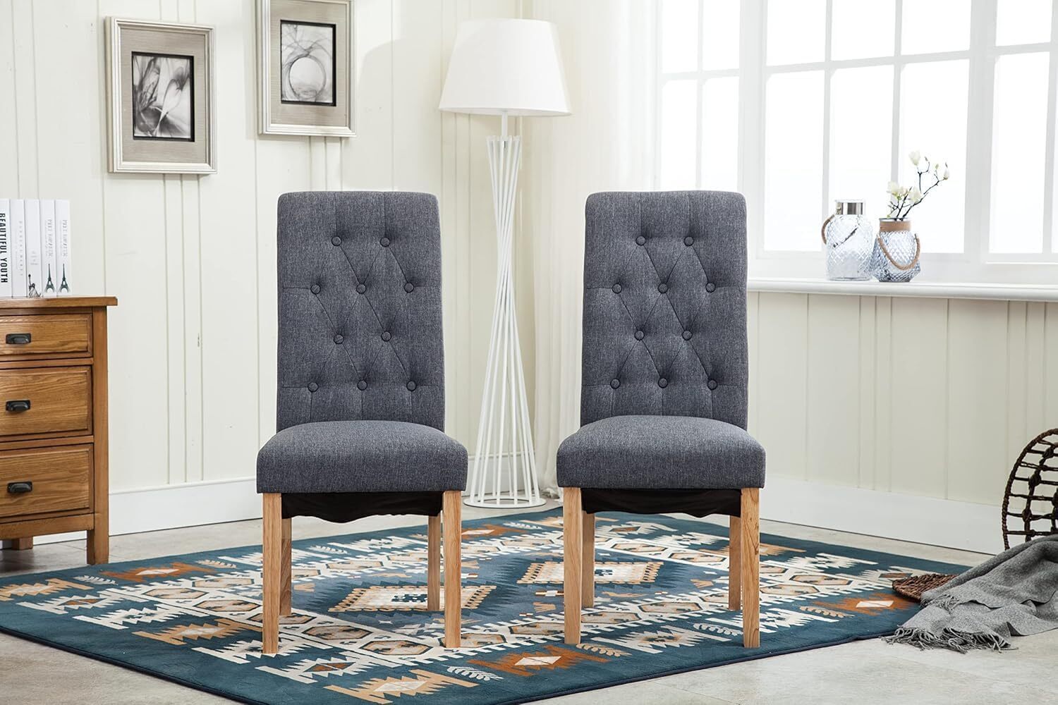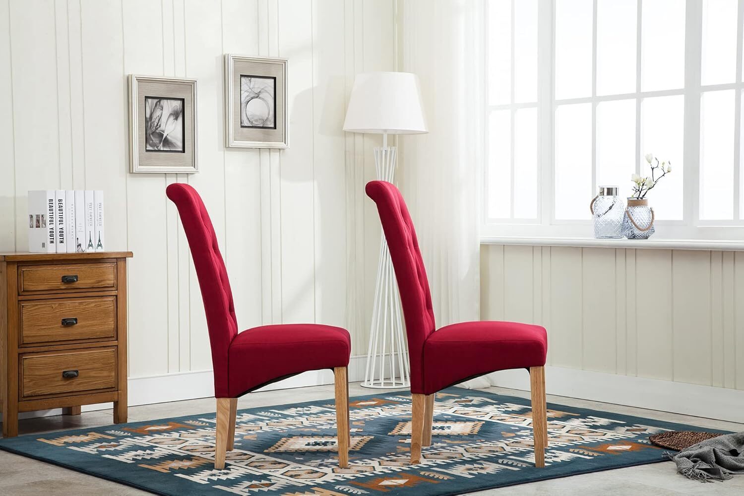 mcc direct Set of 2 Linen Fabric Dining Chairs Roll Top Scroll High Back For Home & Commercial Restaurants