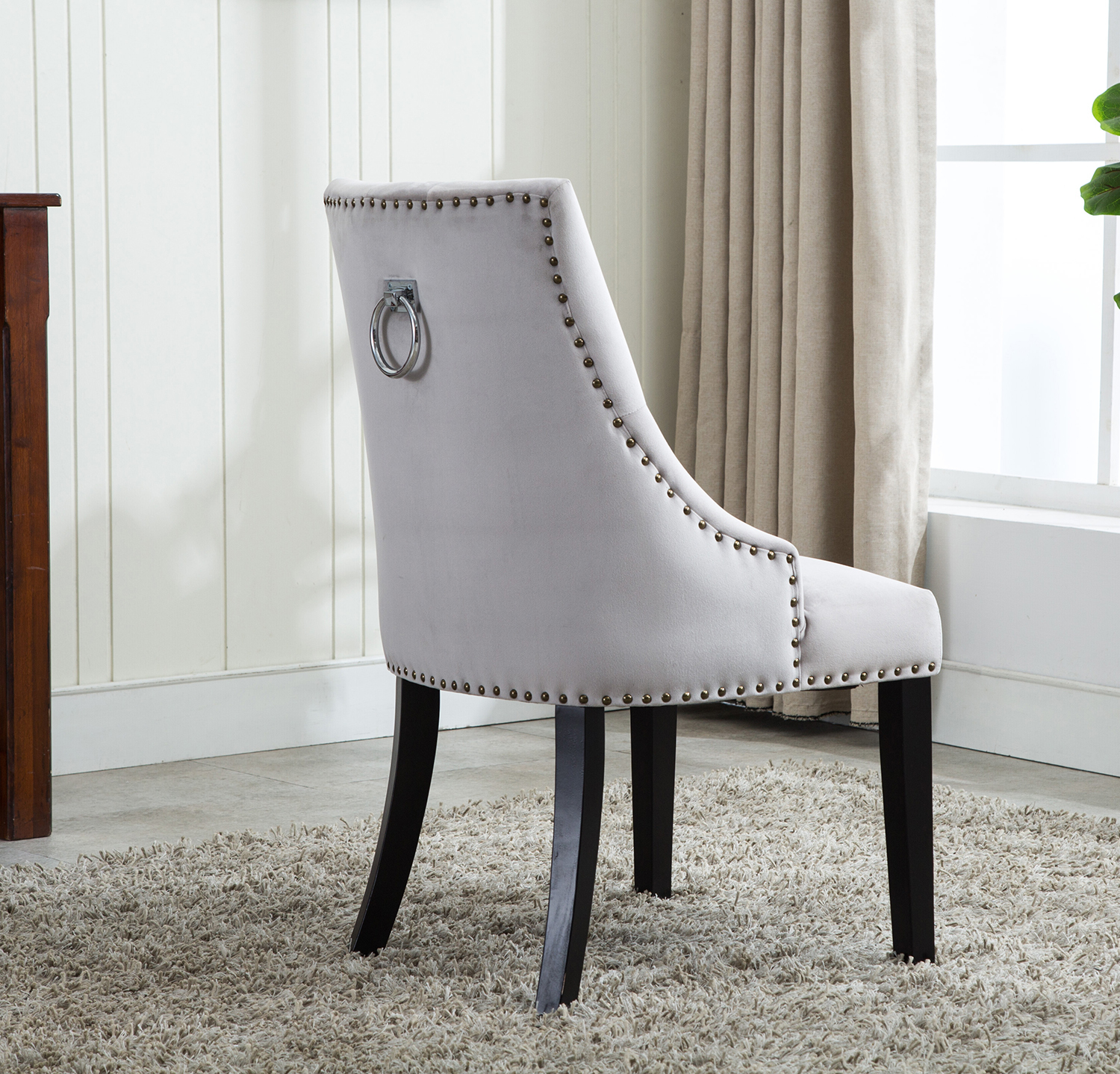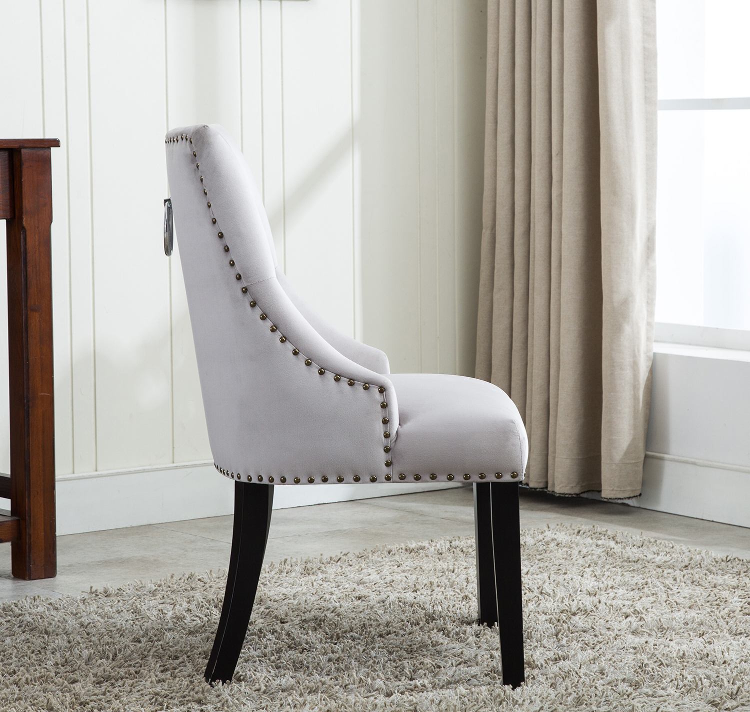 Victoria Tufted Velvet Fabric Studded Accent Dining Chair (Light Grey)