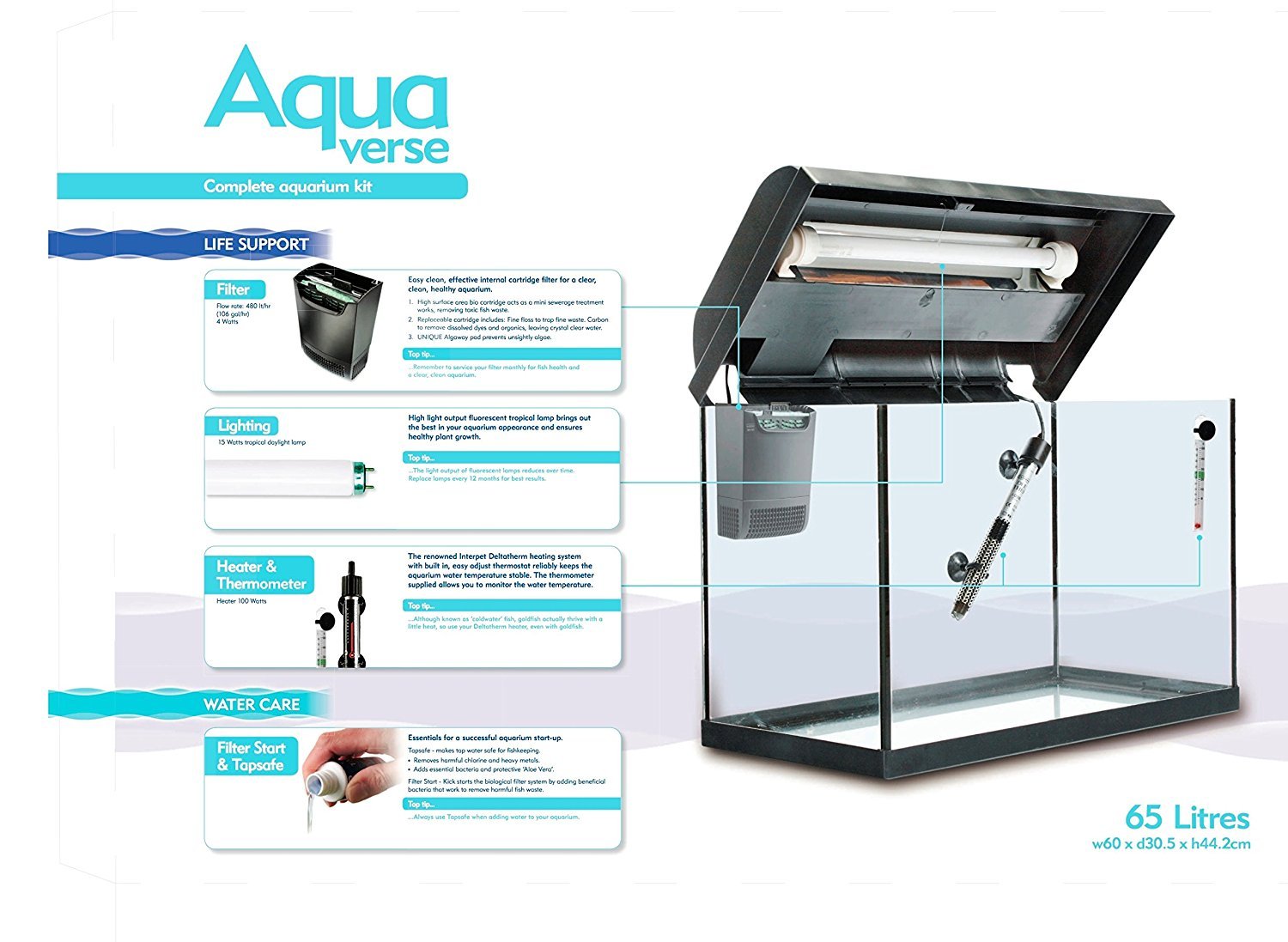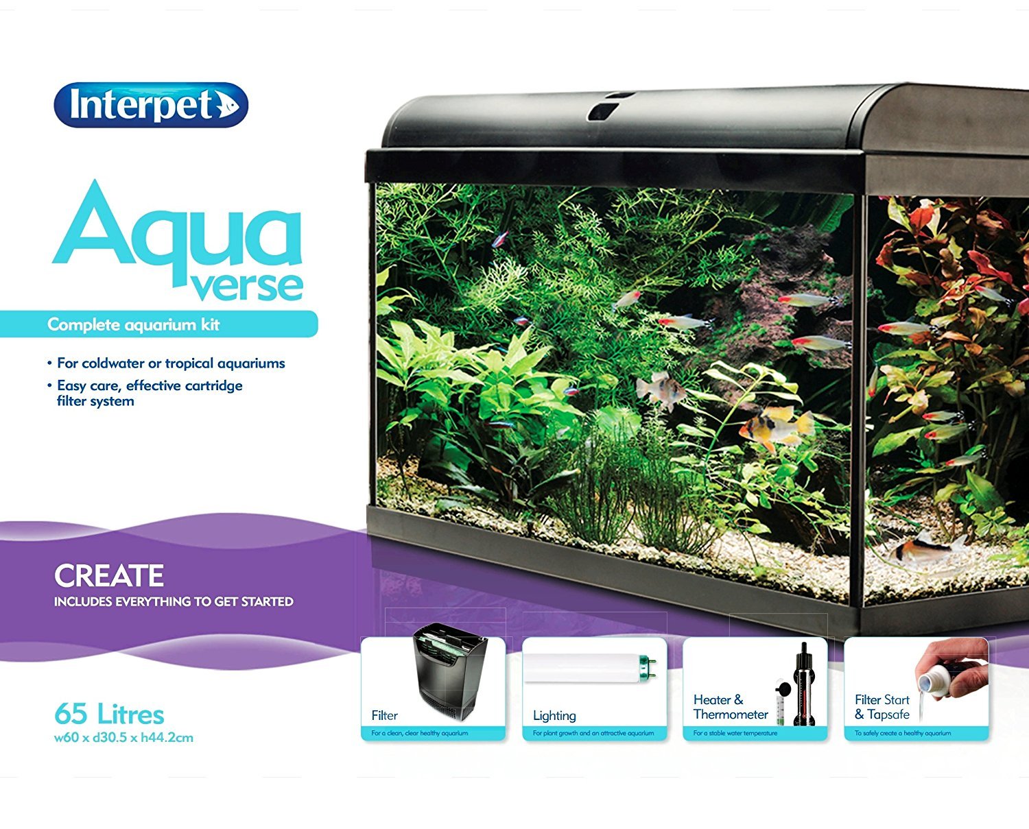 Interpet Aquaverse Glass Aquarium Fish Tank Premium Kit- 65 L