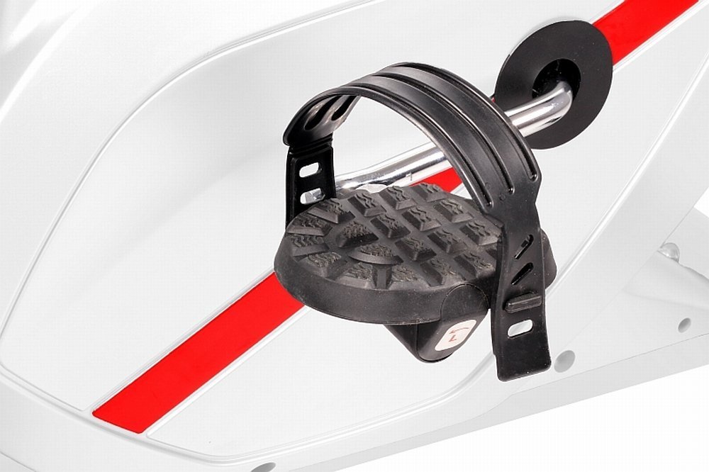 The comfortable saddle is adjustable in height, horizontal and inclination so that an optimal training position can be selected. The large pedals with safety straps provide a secure hold.