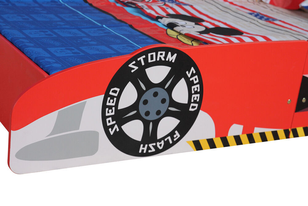 This toddler bed is tastefully designed with Racing Car pattern. Designed low to the floor for your toddler's ease of getting in and out of bed bed and the sturdy solid MDF construction is sure to withstand even the most rambunctious toddler. The perfect transition for toddlers who have outgrown their cribs but are still too small for an adult bed.