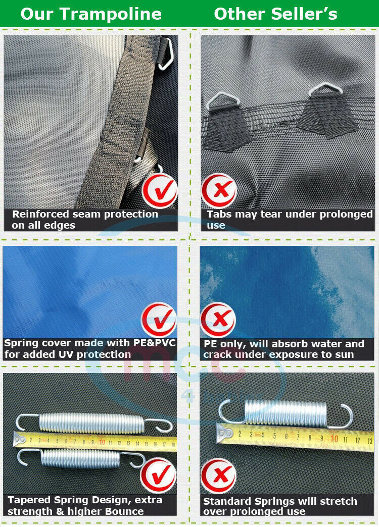 Safety net height: 6ft (150cm) 8ft (150cm) 10ft (180cm) 12ft (180cm) 14ft(180cm)